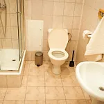 Holberg Apartment is furnished with a sofa set and a writing desk featuring modern facilities like a flat-screen TV with satellite channels. A bathroom includes a separate toilet and a shower, as well as a hair dryer and bath sheets.